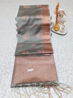 🌹Artistic Detail: The body is adorned with delicate floral buttas, while the borders feature intricate woven creepers in a modern Copper Zari finish.