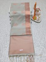 🌹Artistic Detail: The body is adorned with delicate floral buttas, while the borders feature intricate woven creepers in a modern Copper Zari finish.