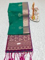 🌷Grand Border: A wide, luxurious zari border featuring bold sunflower and foliage motifs, adding a touch of traditional grandeur.