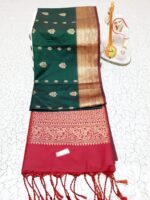 🌷Design: Intricate zari buttas on the body with a rich, traditionally woven pallu.
